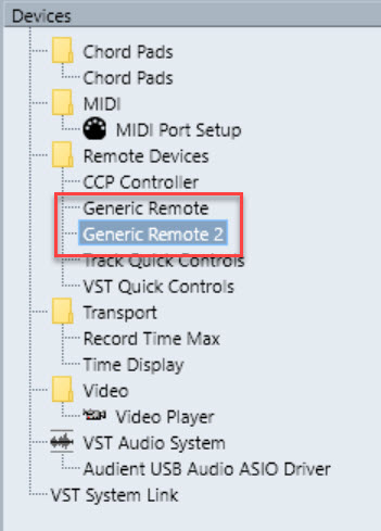Please note that the English name "Generic Remote" should be used regardless of how it is presented in the Cubase Studio Setup window. If you have a non-English version of Cubase you will have a localized name in the Studio window but must still use the English name in this file.<GenericRemoteName>Generic Remote 2</GenericRemoteName>
