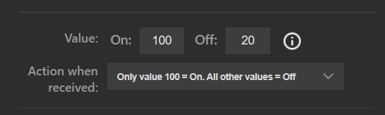 - The On value and all values above it will set the button to the On state. Values below the On value will set the button to the Off state.