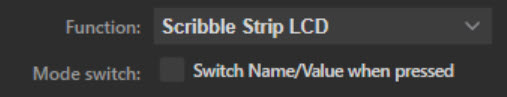 Select the Midi channel that should be The button will display the part of the scribble strip LCD that belongs to the selected channel strip. By default, the button does not react when pressed, but you can change this behavior with the checkbox Switch Name/Value when pressed.