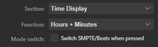 The button will display all or parts of the Mackie Control time display. By default, the button does not react when pressed, but you can change this behavior with the checkbox Switch SMTPE/Beats when pressed.