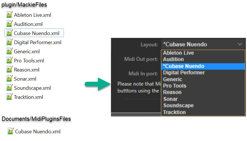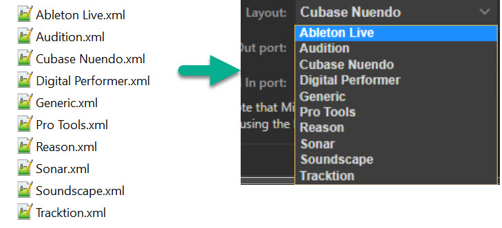 In the plugin folder, the subfolder MackieLayouts contains the layout xml files for the various daws. The layout dropdown in the editor is populated with the names of the files found (with valid layout content)