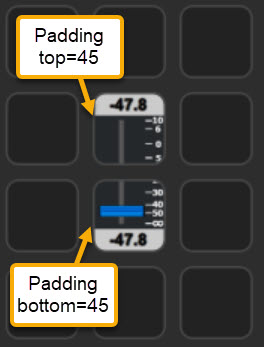 When calculating how much and which part of the VU image to show, the plugin excludes space occupied by padding. If you, e.g., have two buttons with 45 pixels padding both at the top and bottom, a 100% VU meter will start 45 pixels from the bottom and end 45 pixels from the top.