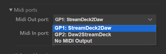 Instead of configuring each button and dial to use "StreamDeck2Daw" as the MIDI out port, you can set "Global port 1" to use "StreamDeck2Daw" and then assign all buttons and dials to "Global port 1". If you need to update the port assignment for all buttons and dials, you can change the connection for global port 1, and it will automatically apply to all buttons and dials.